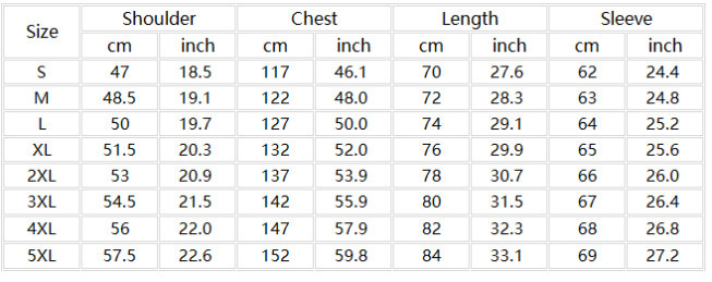 Sizes: S, M, L, XL, 2XL, 3XL, 4XL, 5XL